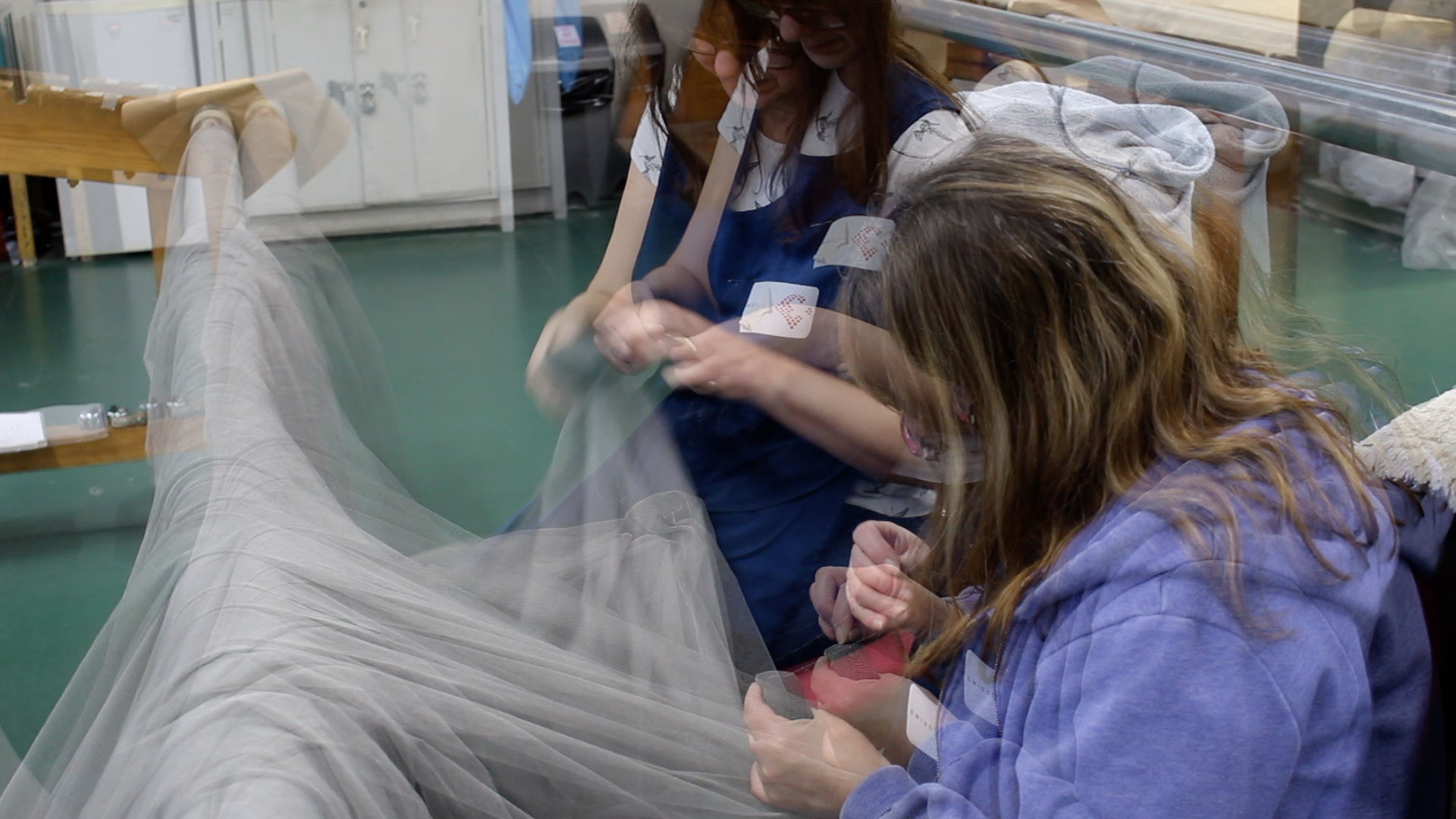 The film celebrates the skill of mending fine fabrics used in wig making, threatre curtains and wedding veils. All produced on vintage machinery.